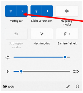 Auf den Pfeil neben dem WLAN-Symbol klicken und in dem nächsten Fenster auf den WLAN-Namen klicken, den Sie zuhause haben.