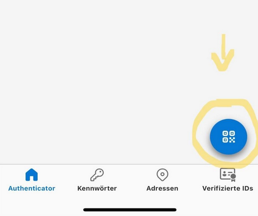 3. Klicken Sie in der App auf den blauen Kreis, welcher einen QR-Code anzeigt.